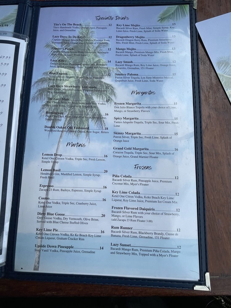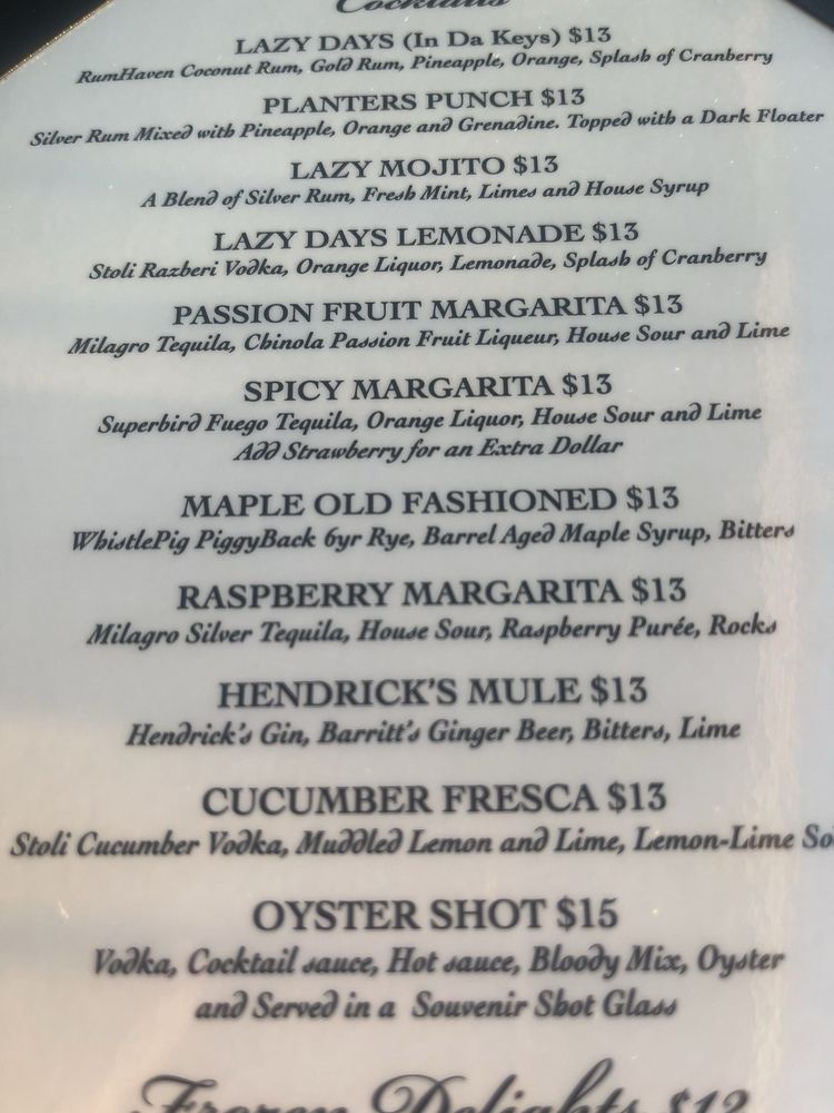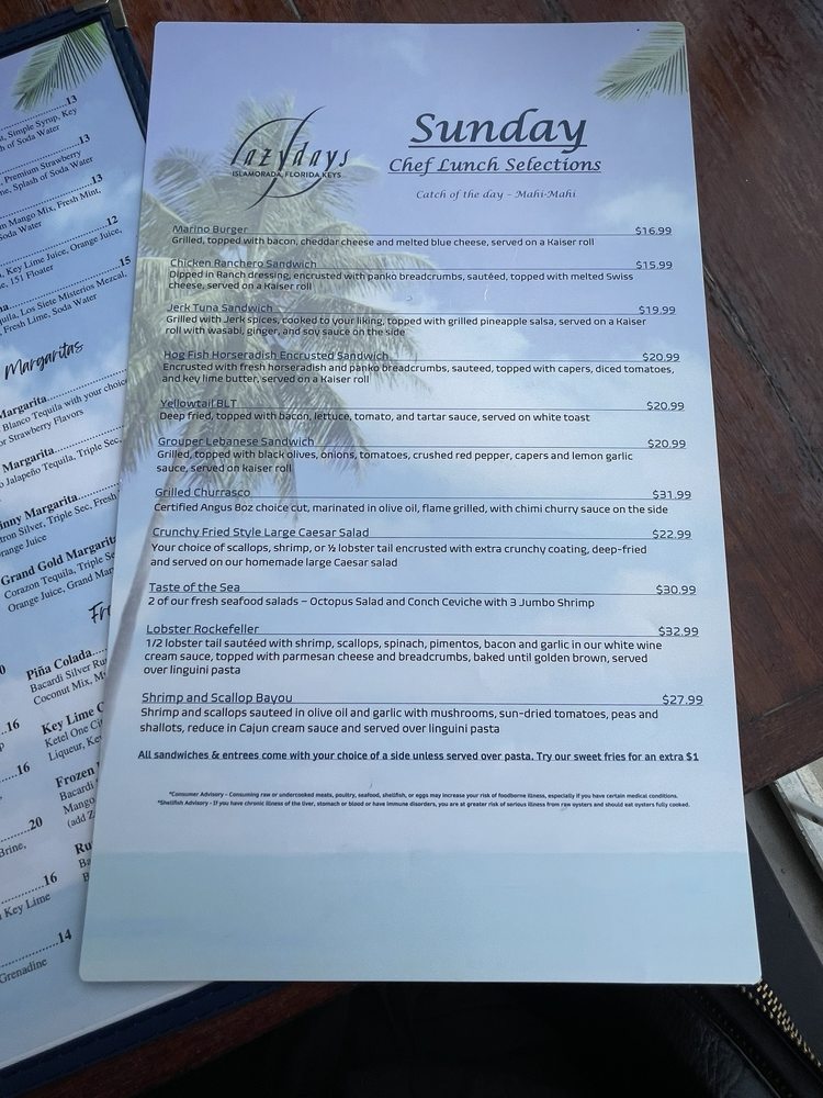 Lazy Days Restaurant in Islamorada, FL is a must-visit spot for American, seafood, and bar enthusiasts. Offering a wide range of amenities such as outdoor seating, live music, and vegan options, Lazy Days promises a memorable dining experience. Customers rave about the generous portion sizes, delicious food, and friendly service. The restaurant's scenic beachfront location provides a stunning backdrop for enjoying cocktails and appetizers. The seafood dishes, including crab legs and oysters, are particularly recommended by patrons. With a laid-back ambiance and diverse menu options, Lazy Days is a perfect place to unwind and savor a meal in the Florida Keys.